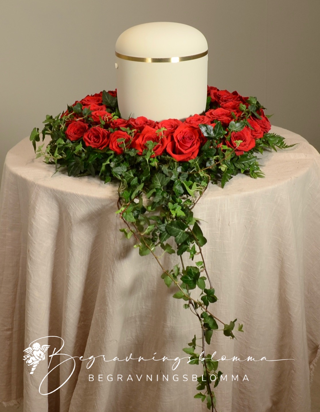 Urnkrans med röda rosor. Stomme 36 cm